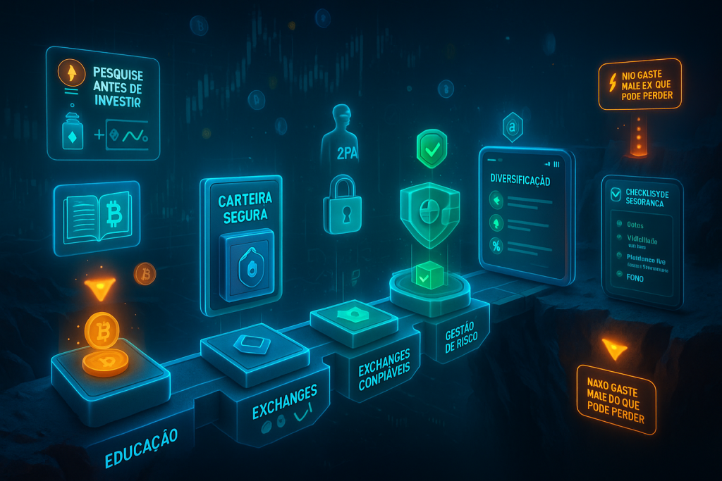 - Priorizar criptoativos consolidados como Bitcoin ou Ethereum no início